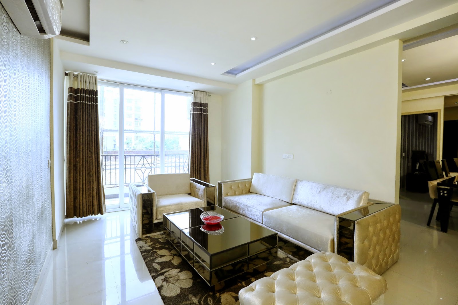 room. This semi furnished space presents a majestic look and appeal to both the